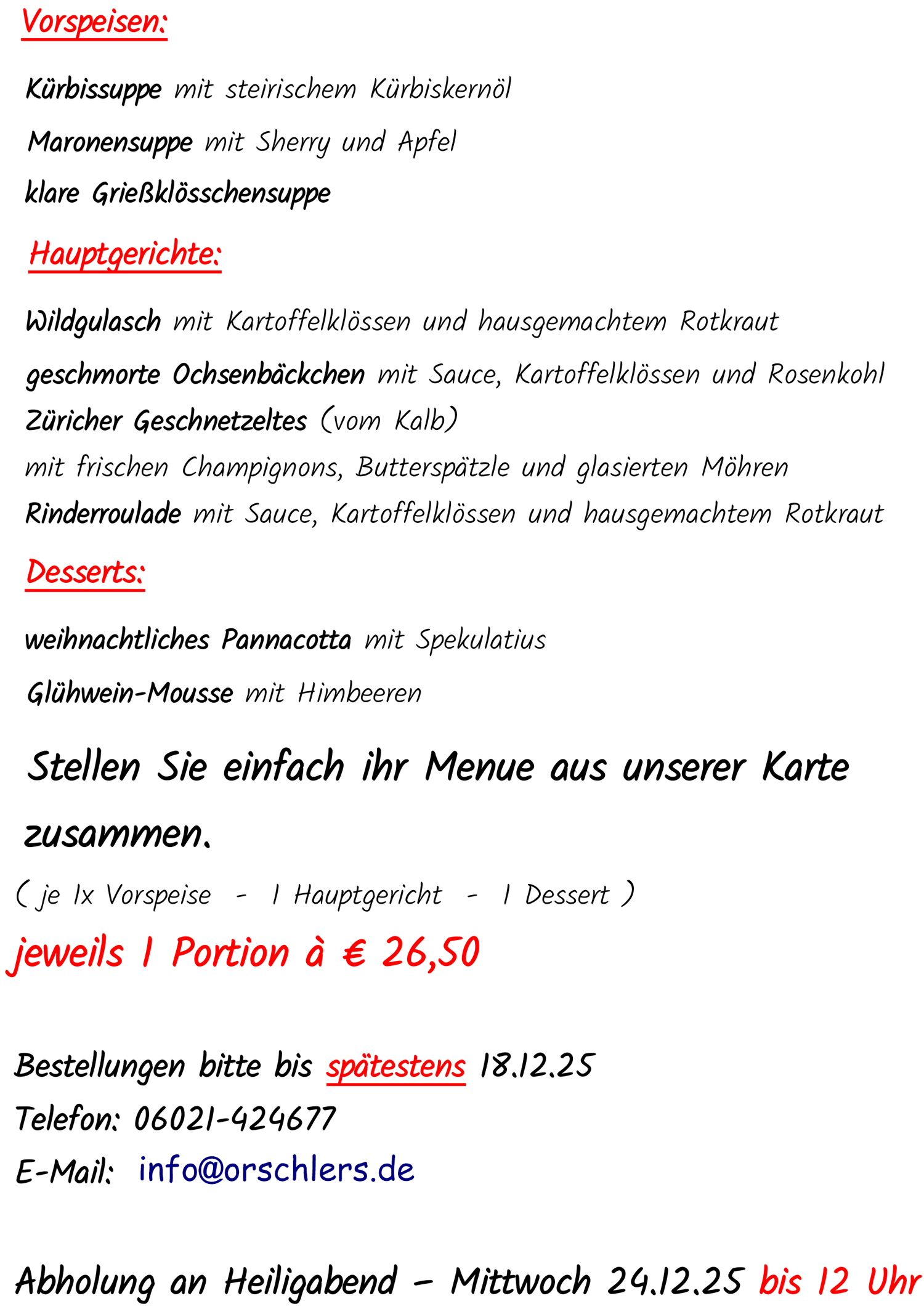Telefonische Vorbestellung bitte bis 11 Uhr